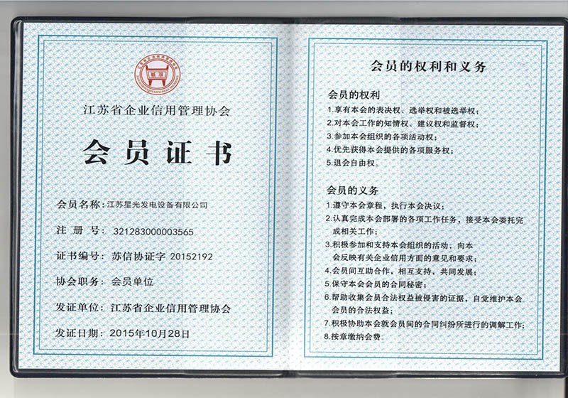 江蘇省企業(yè)信用管理協(xié)會會員證書
