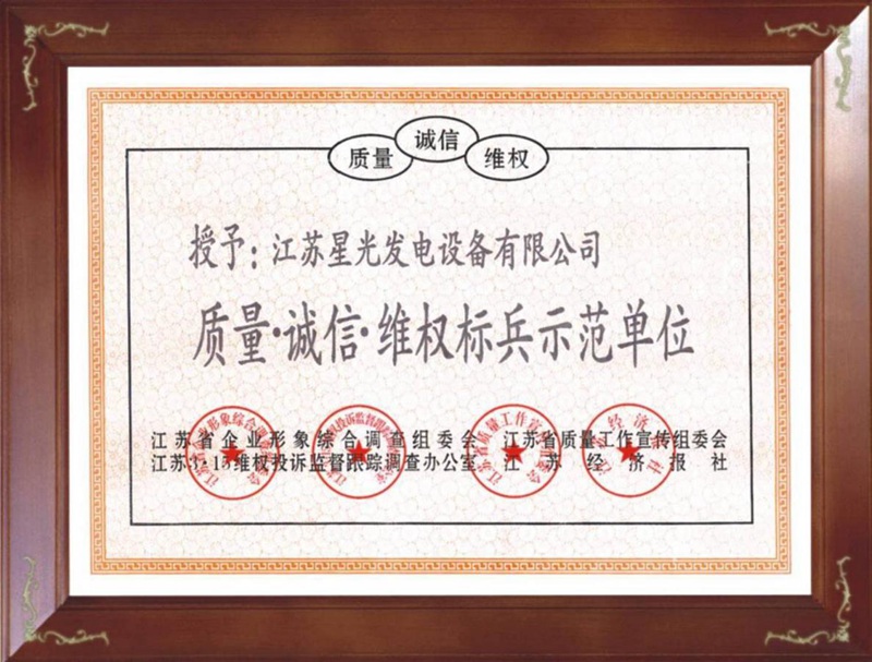 江蘇重質量、講誠信、創品牌三滿意示范單位榮譽